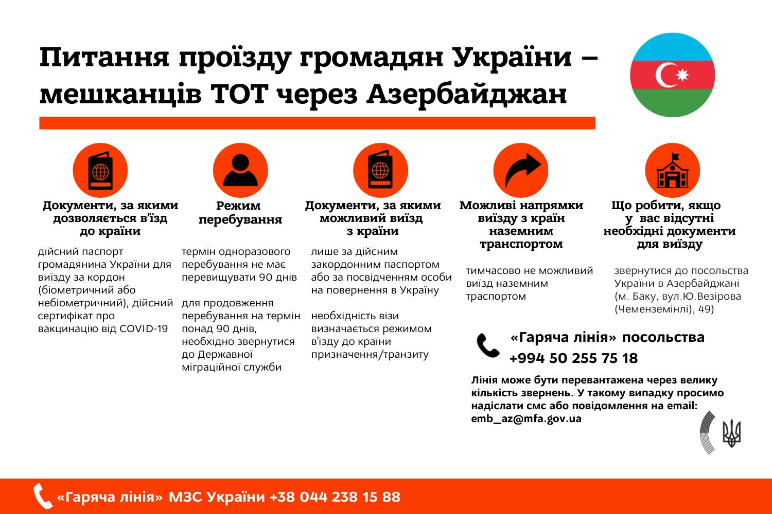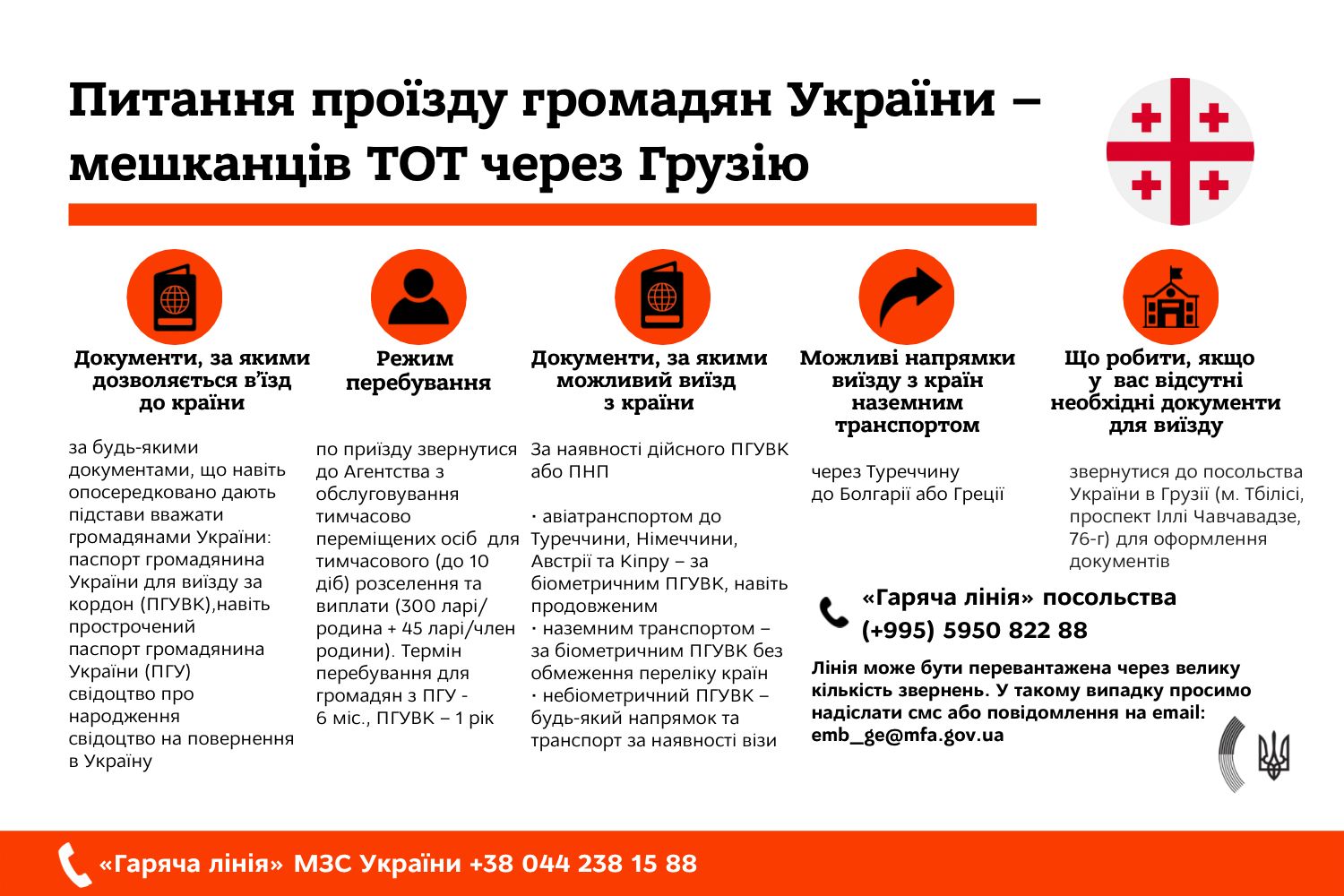 "У зв’язку із загрозою життю та здоров'ю українських громадян, які перебувають на території Криму та інших тимчасово окупованих територій України", МЗС надало роз’яснення щодо особливостей в’їзду/транзитного проїзду/виїзду громадян України через Грузію, Азербайджан та Казахстан.