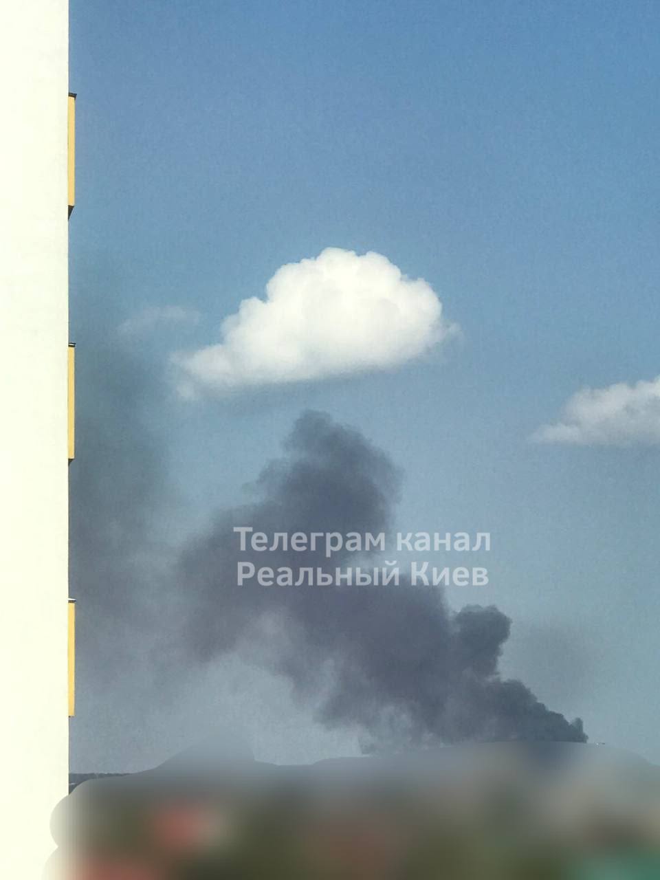Телеграм-канали повідомляли про звуки вибухів та стовп чорного диму у районі одного з підприємств на Борщагівці.