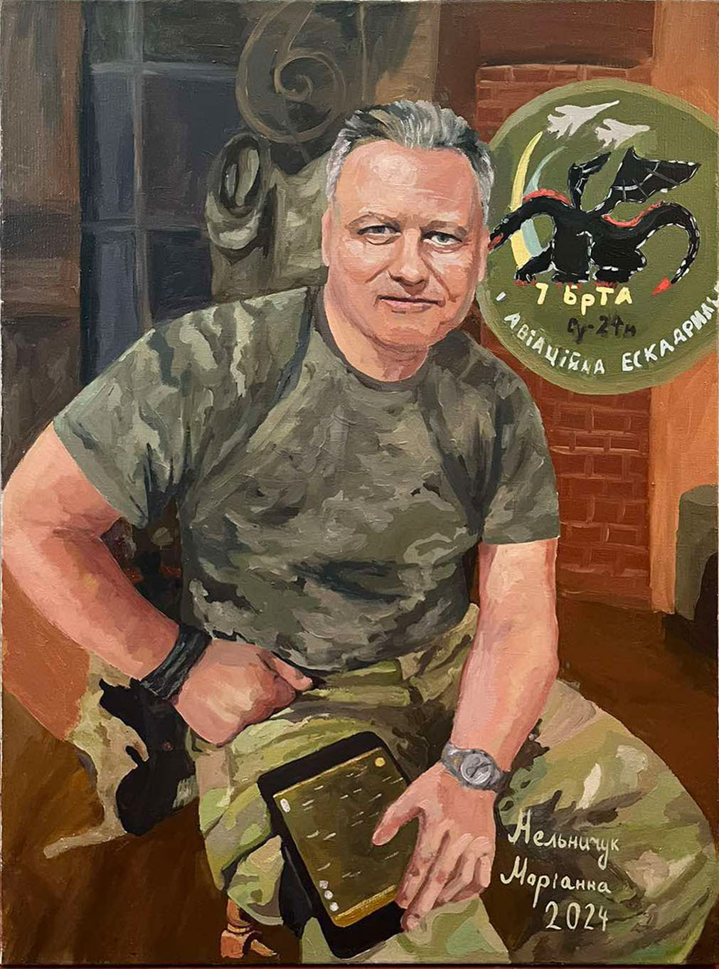 Мельничук Маріанна “Портрет підполковника Віктора Волинця” (полотно, олія, 80×60 см., 2024 р).