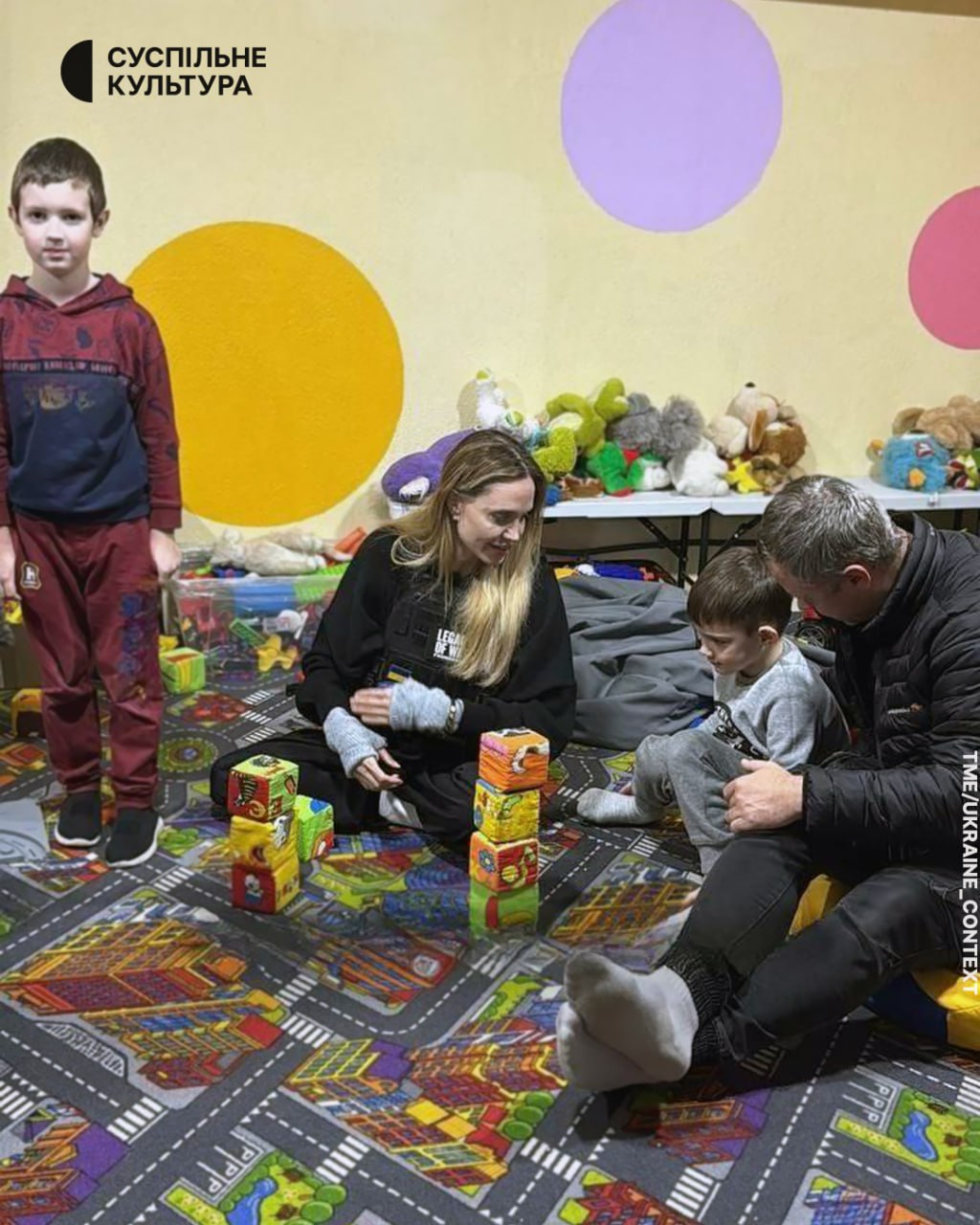 На фото, які поширюють у соцмережах, видно, що Анджеліна Джолі зустрілася з дітьми в укритті.