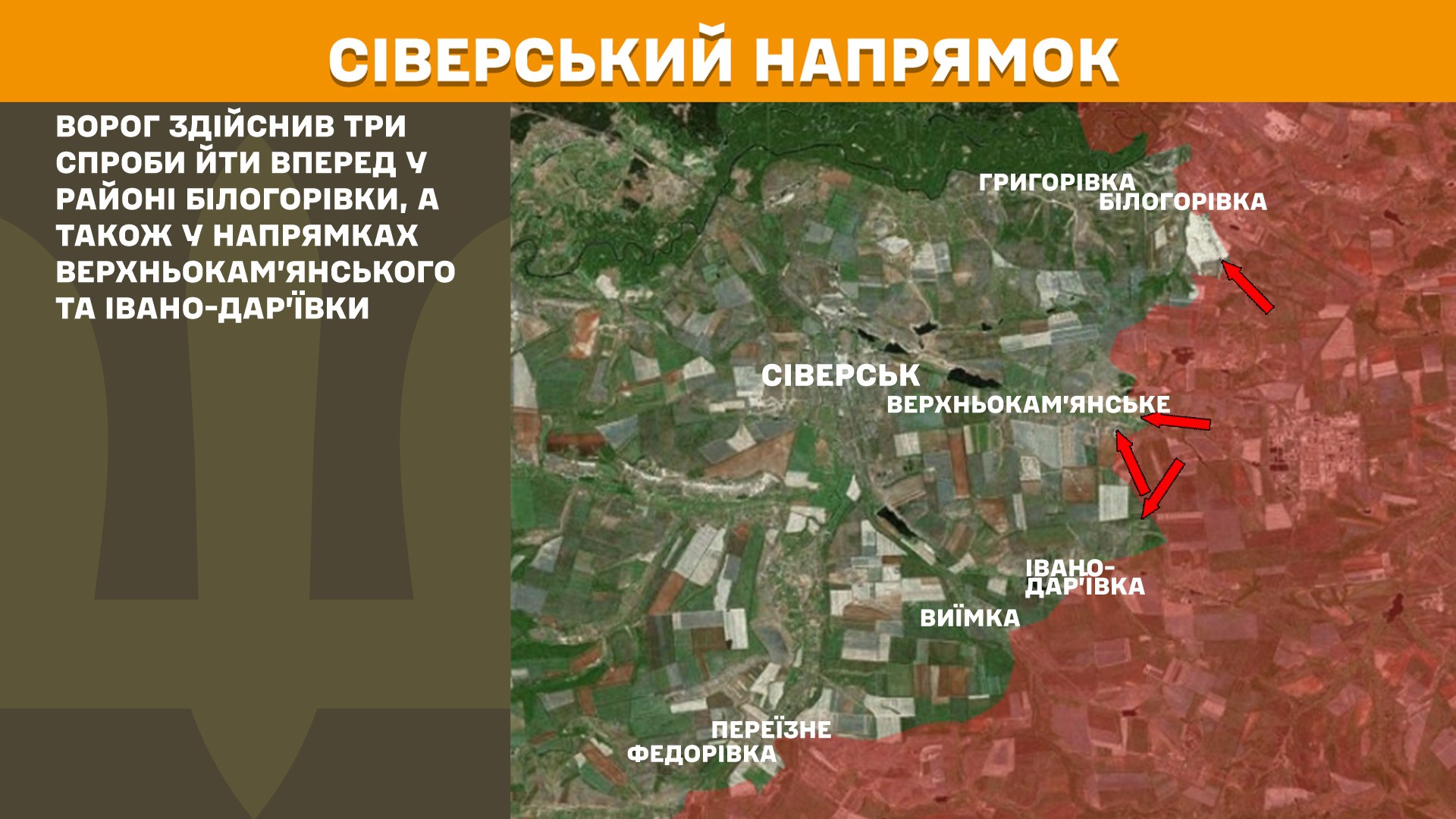 На Сіверському напрямку ворог здійснив три спроби йти вперед у районі Білогорівки, а також у напрямках Верхньокам’янського та Івано-Дар’ївки.