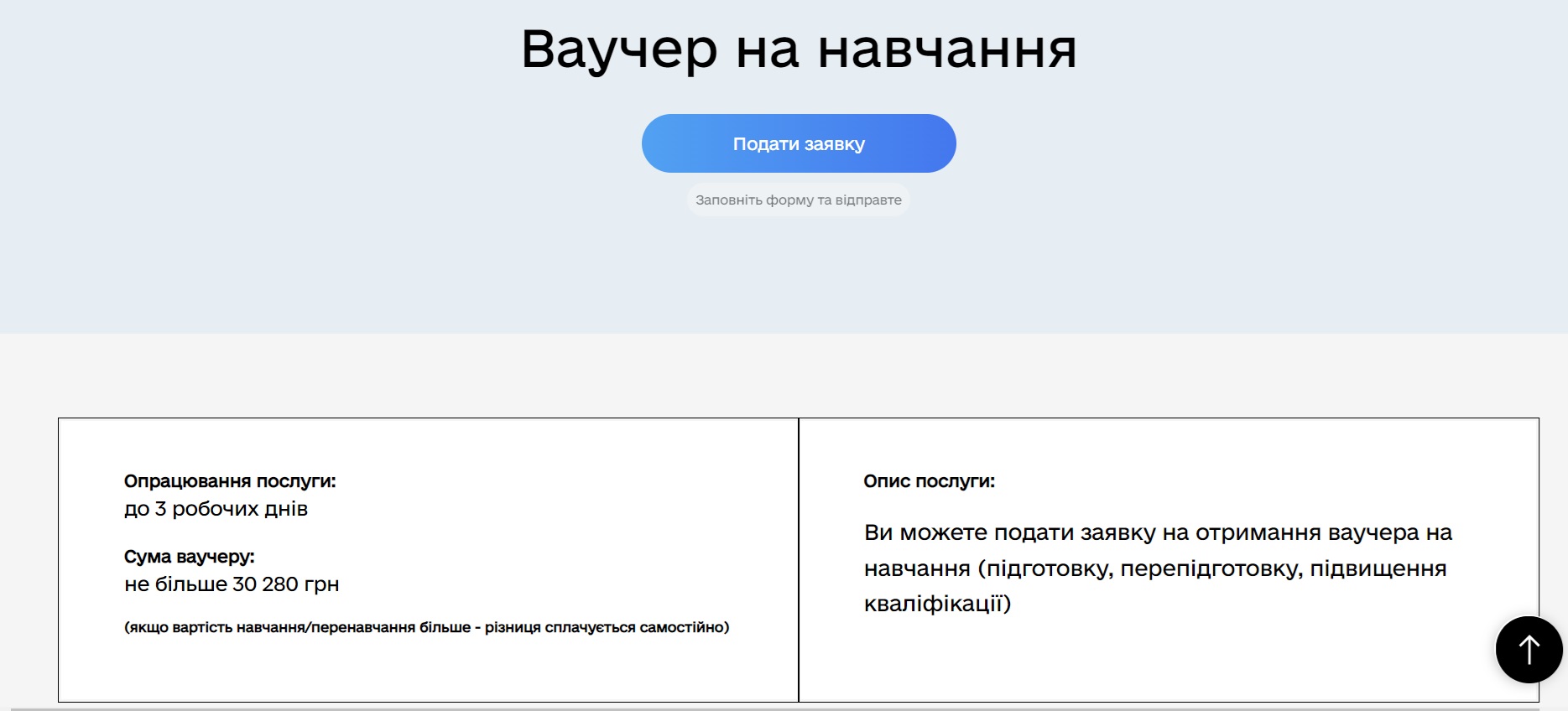 Заявку на отримання ваучера можна заповнити онлайн на сайті Луганського обласного центру зайнятості. Зазначається, що сума ваучеру має бути не більше 30280 грн. Якщо вартість навчання є більшою, то різницю клієнт оплачує самостійно.