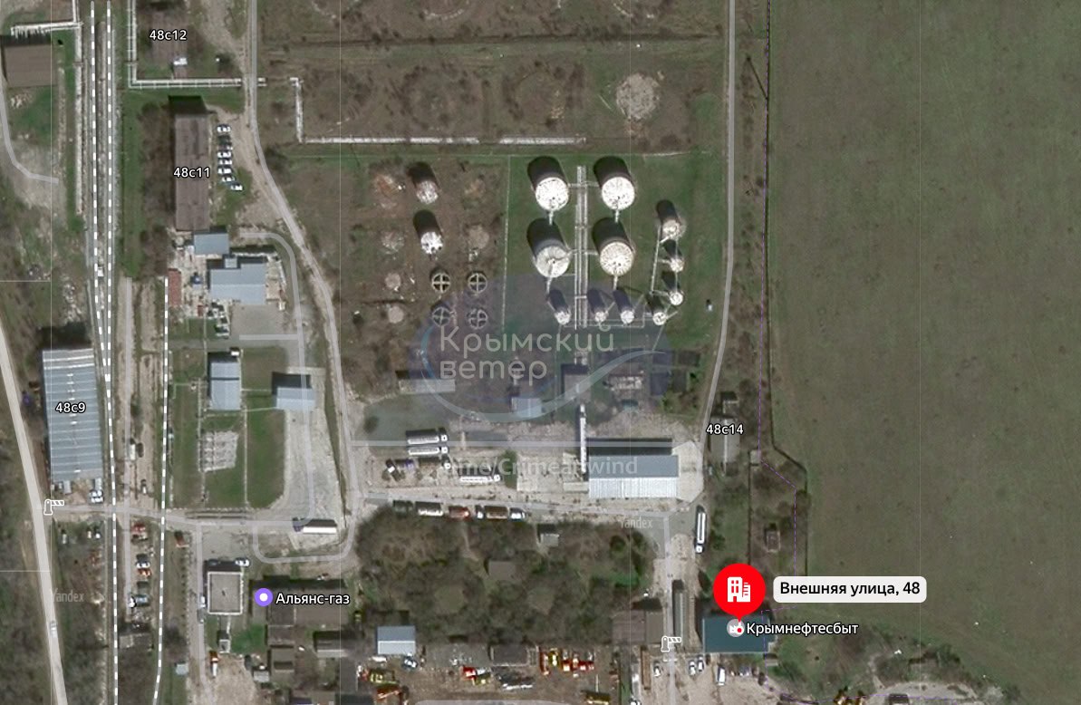 «Імовірно, в Сімферополі горить саме ця нафтобаза - «Кримнефтесбыт» в селищі Бітумне», - йдеться в повідомленні пабліку з посиланням на підписників.