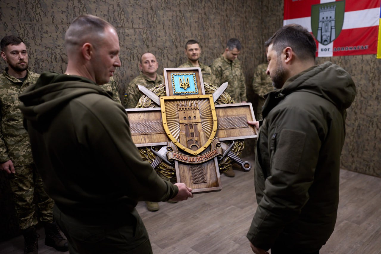 "На основному командному пункті 100-ї окремої механізованої бригади, яка обороняє Костянтинівку з напрямків Плещіївки та Іванопілля. Президент України Володимир Зеленський та Головнокомандувач ЗСУ Олександр Сирський зустрілися з воїнами підрозділу", - повідомляє 7 березня Телеграм-канал Головкома ЗСУ.