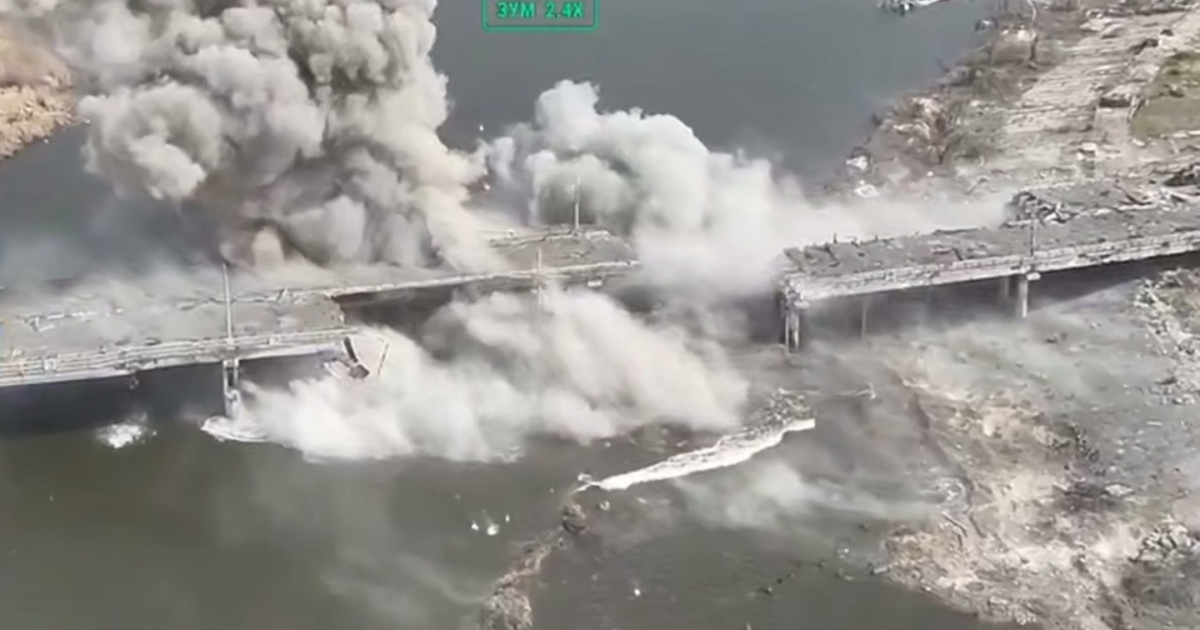 Зазначається, що отвори в мості, в які спускали вибухівку, зʼявились не самі собою - перед цим по ньому було завдано ряд авіа- та ракетних ударів, але він продовжував стояти.