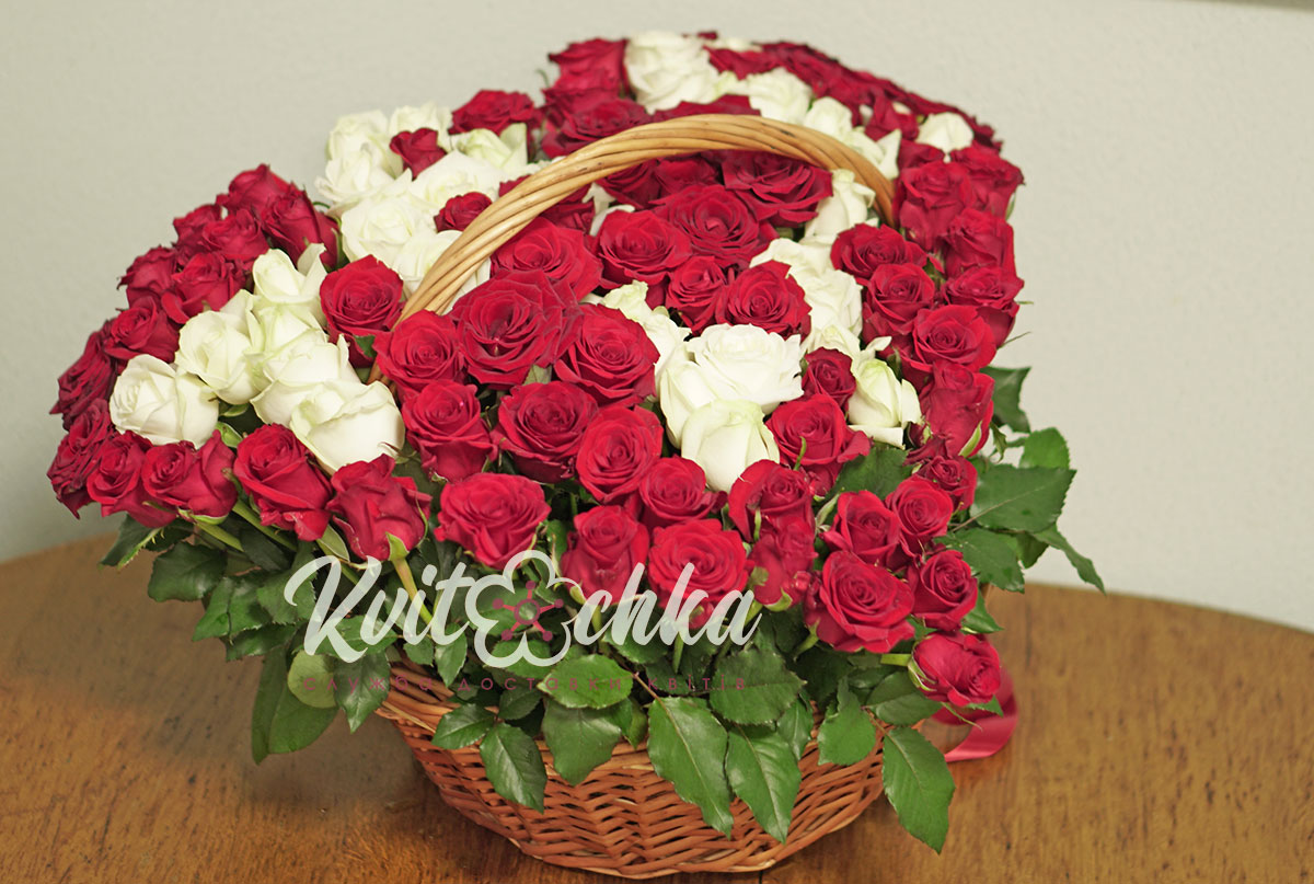 101 троянда в кошику - це шикарний букет, елегантно упакований в акуратний кошик з гарним плетінням. Він стане родзинкою тієї знаменної події, на честь якої буде подано квіти. Такий розкішний подарунок безсумнівно зведе вашу дівчину з розуму і відніме мову від надлишку позитивних емоцій та урагану ніжних почуттів.