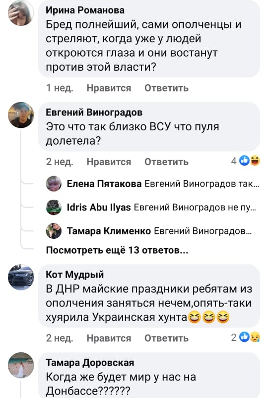 О том, что ВСУ намеренно стреляют по детским садам, школам и жилым домам, думают немало дончан. Хотя жители Петровского района не скрывают информацию о том, что первыми начинают стрелять "наши". Но, по всей видимости, сила телевизора сильнее логики и разума.