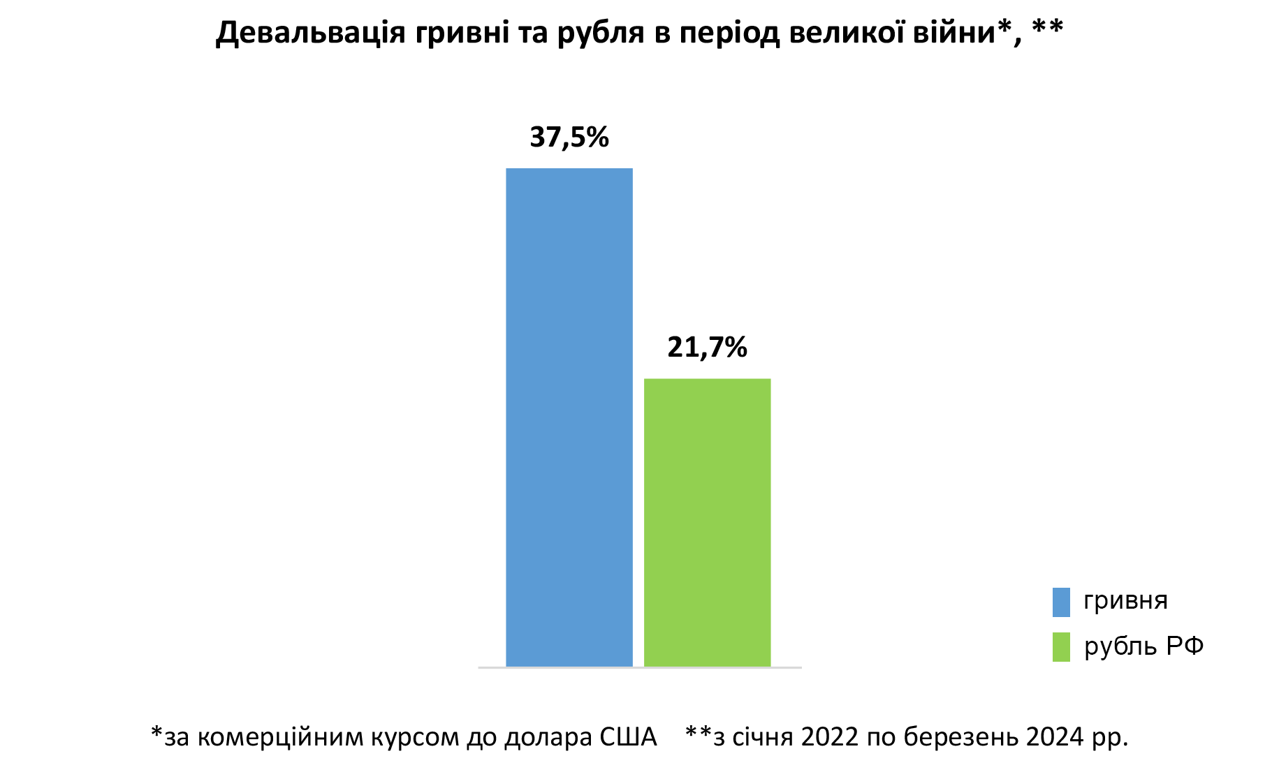 Также по обе стороны фронта война обесценила национальную валюту. Соотношение девальвации еще раз показывает, что экономика страны-агрессора пострадала меньше.