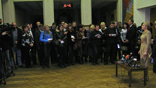 Возле северодонецкого ДК Химиков, где прошло совещание «Химический комплекс Украины: тенденции, проблемы, прогнозы на 2010 год», перед началом мероприятия собрались сторонники Ю. Тимошенко в одежде, приличествующей случаю. Дождались ЮВТ, поприветствовали и разошлись. День-то выдался ненастный.