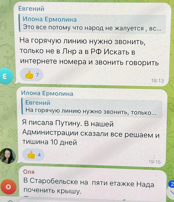 Некоторые даже пытаются бороться с этим ремонтом. Так, в одном из местных телеграмм-каналов пользователь, подписанный как Илона Ермолина, рассказывает, что писала даже путину по этому поводу.