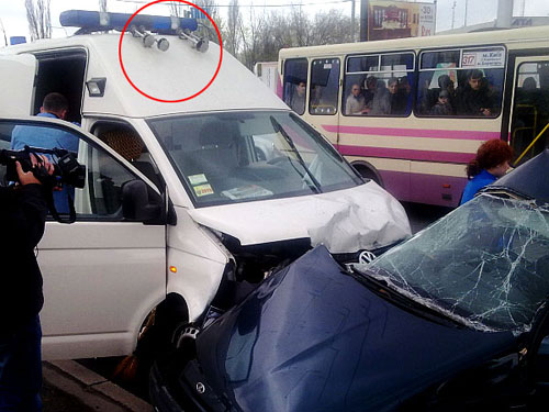 Сьоме. Навіть якщо керуватися логікою міліції, що "швидка" не входила до кортежу, то поява такої машини одразу за Януковичем на перекритому з усіх боків проспекті Бажана просто неможлива. При цьому "швидка" - без жодних упізнавальних знаків, без логотипу невідкладної допомоги, з усіх боків обвішана проблисковими маяками і сиренами.