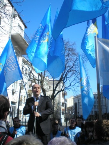 Народ слегка оживился только с появлением на сцене Виктора Януковича. То ли из почтения к Лидеру, то ли предчувствуя окончание мероприятия. Лидер же был, как всегда, оригинален только в оговорках. К концу своего выступления он пригрозил власти новыми акциями, дав ей срок до 14 апреля – именно в этот день парламентарии договорились рассмотреть антикризисную программу правительства.