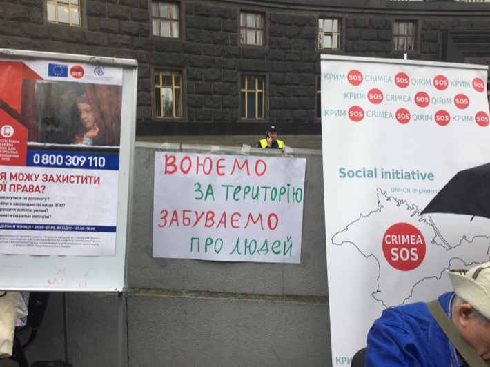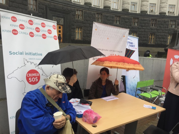 Помимо "жилищных митингов", в среду под Кабмином состоялась акция, посвященная защите прав внутренне перемещенных лиц. В рамках этой акции общественные организации, которые занимаются в Украине пострадавшими в результате временной оккупации и вооруженного конфликта ("Крым SOS", "Восток SOS", "Донбасс SOS", БФ "Право на защит"у, Общественный холдинг "Группа влияния") предоставляли юридические услуги внутренне перемещенным лицам прямо под открытым небом.