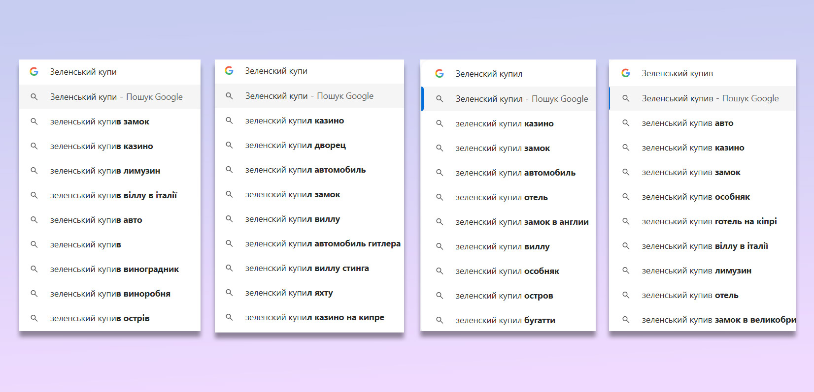 Системная работа по дискредитации Владимира Зеленского велась все это время и по линии «зеленский-вор». Это четко прослеживается в запросах «Зеленский купил»: