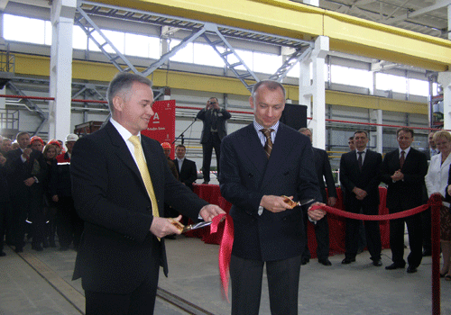 ФОТО. Торжественное открытие завода. Ленточку перерезает представитель акционеров ООО «Металлы и полимеры» и Владимир Рисухин