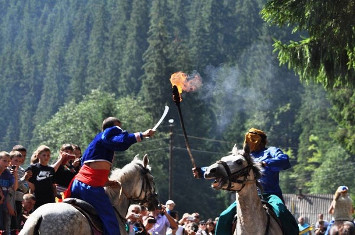 Одним из наиболее известных и ярких выступлений луганского казачьего конного театра за последнее время является участие в фестивале «На Синевир трембіти кличуть» в Закарпатской области.