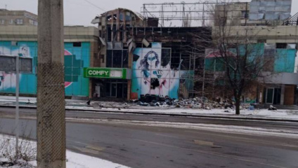 В Донецке показали последствия "прилета" - сгоревшее здание бывшего супермаркета «Comfy»