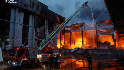 На левом берегу Киева после атаки РФ горят продовольственные склады