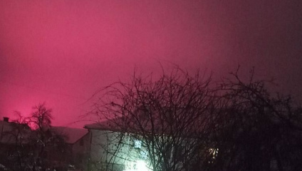 После российской атаки в небе над Львовской областью наблюдается ярко-малиновое свечение