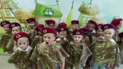 В детском саду на оккупированном Запорожье украинских детей нарядили в десантные береты и камуфляж и заставили поздравлять российский спецназ