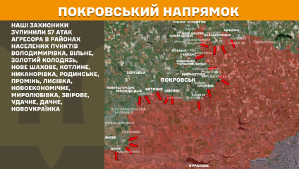 За сутки произошло более 200 боестолкновений по всей линии фронта, из них 57 - на Покровском направлении