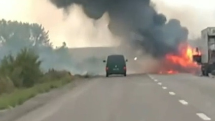 Горящая техника на трассе Изюм - Славянск, которую все чаще обстреливает враг