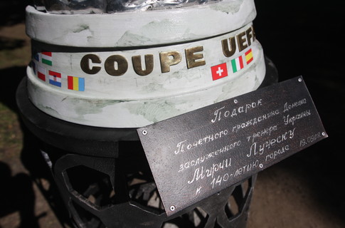 Как сообщалось, презентация кубка УЕФА прошла в рамках XI-го международного фестиваля кузнечного мастерства. Такой подарок городу сделал почетный гражданин Донецка, тренер ФК "Шахтер" Мирча Луческу. Первоначально он предлагал установить копию Кубка на одной из площадей Донецка, как сделали в Турции, например. Болельщики также предлагали установить копию Кубка на одной из площадей, например, у "Донбасс Арены", мол, там ему самое место. Но потом М. Луческу побывал в Парке кованых скульптур и согласился разместить Кубок там.