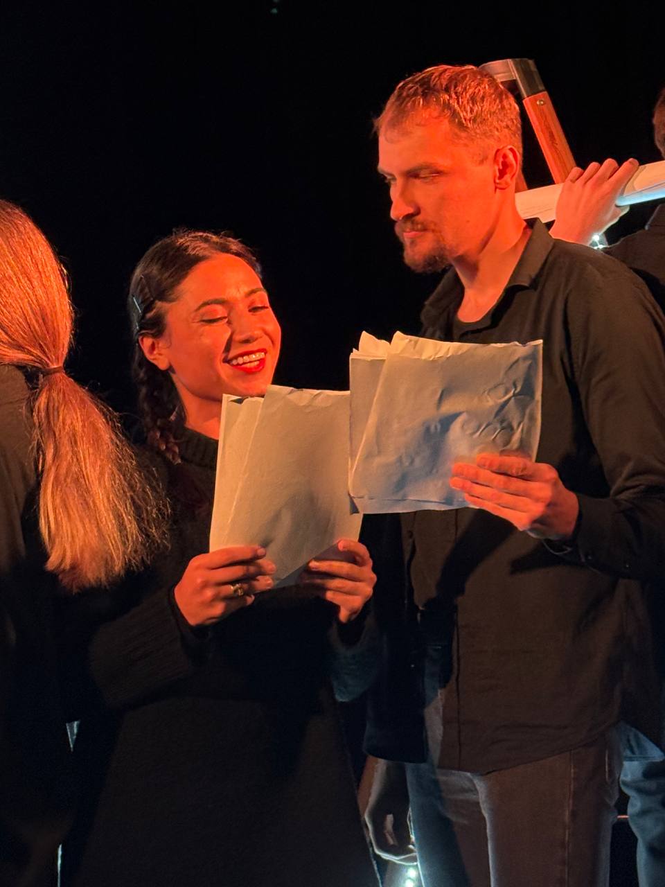 <p style="text-align: justify;">Актёры Луганского областного академического украинского музыкально-драматического театра стали первыми, кто открыл показы эскизов мюзиклов в рамках образовательного и художественного проекта «Лаборатория мюзикла», — сообщает корреспондент «ОстроВа».</p> <p style="text-align: justify;">Презентация результатов стартовала 17 октября в Художественно-культурном центре имени Ивана Козловского, где состоялось читание «Город» по роману Валериана Подмогильного. Это первый из двух показов первого дня, что подчёркивает важность проекта для развития украинского мюзикла в условиях войны.</p> <p style="text-align: justify;">«Лаборатория мюзикла» реализуется Национальным союзом театральных деятелей Украины (НСТДУ) при поддержке Украинского культурного фонда в рамках конкурсной программы «Культура во время войны». Участниками стали пять драматургов — Оксана Гриценко, Павел Коломиец, Татьяна Леонова, Олег Михайлов, Наталия Торжевская — и пять композиторов — Владимир Богатырёв, Богдан Демьяненко, Евгений Золотухин, Максим Иванов, Александр Чёрный.</p> <p style="text-align: justify;">Во время первой и второй резиденций участники посещали лекции и мастер-классы ведущих композиторов, дирижёров, драматургов, либреттистов и режиссёров, участвовали в дискуссиях, обсуждениях и индивидуальных консультациях с кураторами, активно работая над либретто и музыкальными композициями.</p> <p style="text-align: justify;">Сопровождали участников на всех этапах три куратора: автор проекта, руководитель отдела внешних коммуникаций НСТДУ Ольга Байбак, драматург и писательница Лена Лягушонкова, а также главный дирижёр Национальной оперетты Украины, преподаватель Сергей Дидок.</p> <p style="text-align: justify;">Показ «Города» состоялся по либретто Олега Михайлова, музыке Евгения Золотухина, стихам Константина Соловьенко; режиссёр читания — Владислав Писарев.</p> <p style="text-align: justify;">«Мы изначально ставили себе целью не полноценную постановку, а именно процесс — work in progress. То, что вы увидите сегодня, — это этап работы, который можно и нужно развивать дальше: дорабатывать либретто, музыку, структуру. У кого-то тексты уже почти готовы, у кого-то — лишь первый акт или несколько сцен. Всё это — эскизы будущих мюзиклов, и мы очень хотим, чтобы эти проекты стали полноценными спектаклями», — отметила в начале Ольга Байбак.</p> <p style="text-align: justify;">«Времени было немного: начали работать в июле, первая лаборатория прошла тогда же, вторая — в конце августа, когда участники уже пришли с первыми драфтами. И вот сейчас — октябрь. Для написания мюзикла это, согласитесь, очень короткий срок», — добавила куратор Лена Лягушонкова.</p> <p style="text-align: justify;">Вторым показом стал «Мазепа» — либретто Павла Коломийца, музыка Богдана Демьяненко, режиссура Александра Спиваковского.</p> <p style="text-align: justify;">Чтения продолжатся 18 октября в Художественно-культурном центре имени Ивана Козловского.</p> <p style="text-align: justify;">Проект реализуется при поддержке Украинского культурного фонда (УКФ).</p> <div class="article__content__img"><img src="/upload/media/2025/10/18/photo-2025-10-18-08-31-17.jpg" alt="" /> <div class="article__content__img"><img src="/upload/media/2025/10/18/photo-2025-10-18-08-30-53.jpg" alt="" /> <div class="article__content__img"><img src="/upload/media/2025/10/18/photo-2025-10-18-08-30-47.jpg" alt="" /> <div class="article__content__img"><img src="/upload/media/2025/10/18/photo-2025-10-18-08-31-25.jpg" alt="" /> <div class="article__content__img"><img src="/upload/media/2025/10/18/photo-2025-10-18-08-31-05.jpg" alt="" /> <div class="article__content__img"><img src="/upload/media/2025/10/18/photo-2025-10-18-08-30-40.jpg" alt="" /> <div 