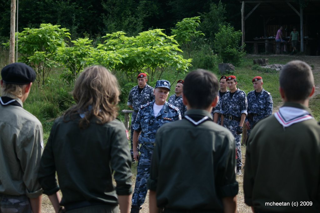 Одразу після завдання по охороні громадського порядку на концерті в Снятині Івано-Франківської області, бійці спецзагону Беркут приїхали на береги Дністровського каньйону, де влаштували свій табір члени національної скаутської організації „Пласт”.