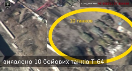Также обнаружено скопление новой техники, которую маркированы: для различения ее БПЛА и вражеской авиацией по принципу "свой-чужой".
