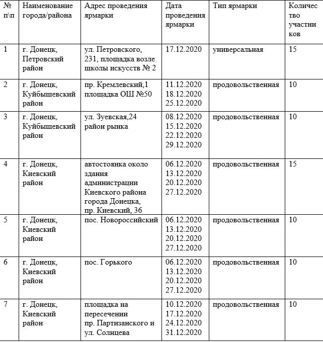 В другом сообщении оккупационной "администрации" Донецка говорится о графике проведения продовольственных ярмарок на окраинах города.