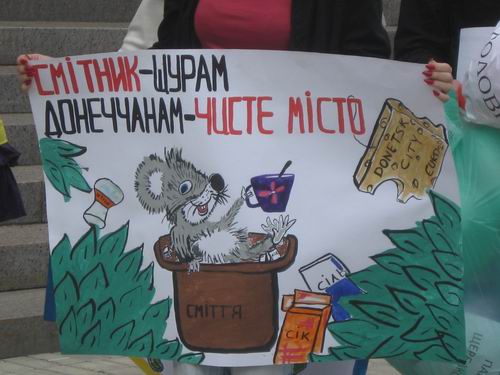 Такой своеобразный подарок сделали активисты Всеукраинской молодежной общественной организации "Демократический альянс", которые провели акцию "Донецк - город миллионов мусорников" сегодня, 10 августа, возле здания Донецкого горсовета.