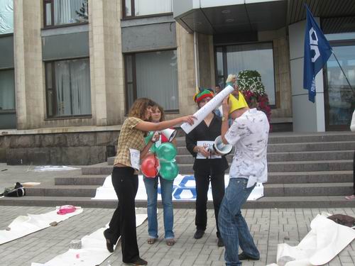 Кроме того, в ходе акции ребята положили на лестницу горсовета, кроме очков для чиновников, и "мусор из наиболее загрязненных районов города". Однако после проведения мероприятия весь мусор дружно собрали.