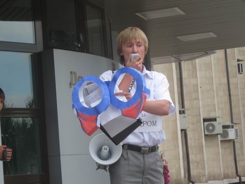 Участники акции кричали под окнами мэра: "Чистый воздух, чистая вода, чистый город без мусора!". В завершении мероприятия под зданием горсовета активисты оставили в подарок мэру очки, "в которых мэр сможет увидеть не только то, что перед ним, а и на окраинах города, в том числе они помогут лучше увидеть проблемы мусора, которые не видно из высоких кабинетов".