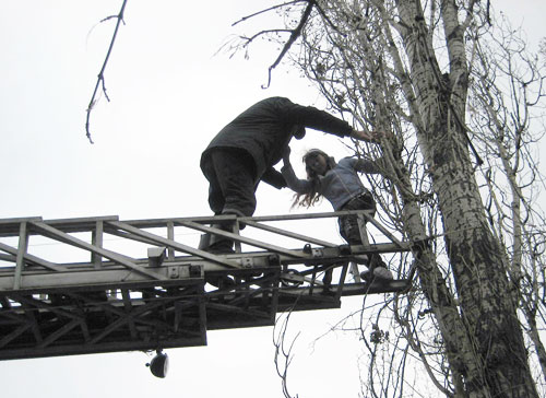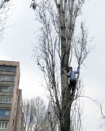 К месту вызова были направлены спасатели на пожарной автолестнице 40-й самостоятельной государственной пожарной части. По прибытии в 11:25 было установлено, что на высоте 15 метров на дереве находится ученица ОШ №3 6-«А» класса, которая не может самостоятельно слезть с дерева.