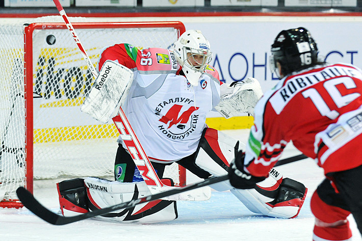 В первом матче очередной домашней серии регулярного чемпионата КХЛ "Донбасс" разгромил новокузнецкий "Металлург" - 5:1. Шайбы: 7:38 Лайне (Федотенко, Киискинен) - 1:0, 15:01 Гареев (Чернов, Картаев - больш.) - 1:1, 33:24 Якуценя (Робитайл, Дадонов) - 2:1, 47:38 Федотенко (Пиганович - больш.) - 3:1, 49:31 Пиганович (Федотенко, Лайне) - 4:1, 52:43 Робитайл (Дадонов, Разин) - 5:1. Фото: Михаил Масловский.