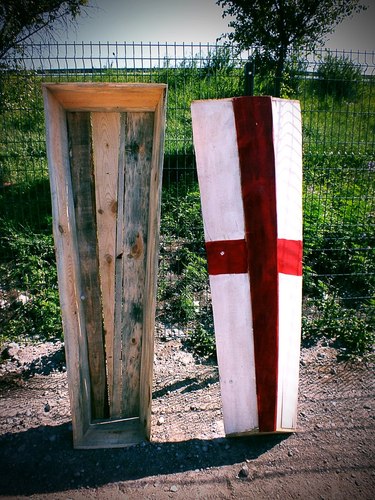 Стартовая цена гроба составляет 10 фунтов стерлингов. Изначально английские болельщики купили его за 150 грн., а затем на территории кемпинг-парка вручную расписали его красной краской. Пока ставок нет.