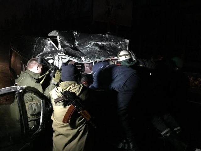 Джип боевиков протаранил автобус в Донецке. Есть жертвы (Фото)