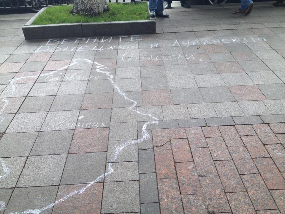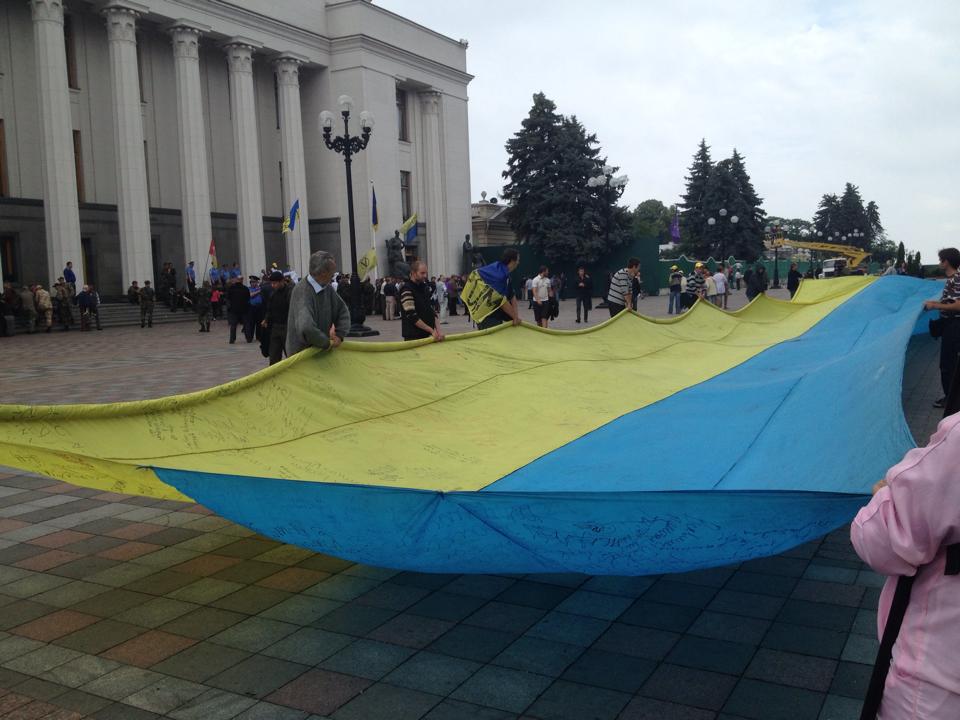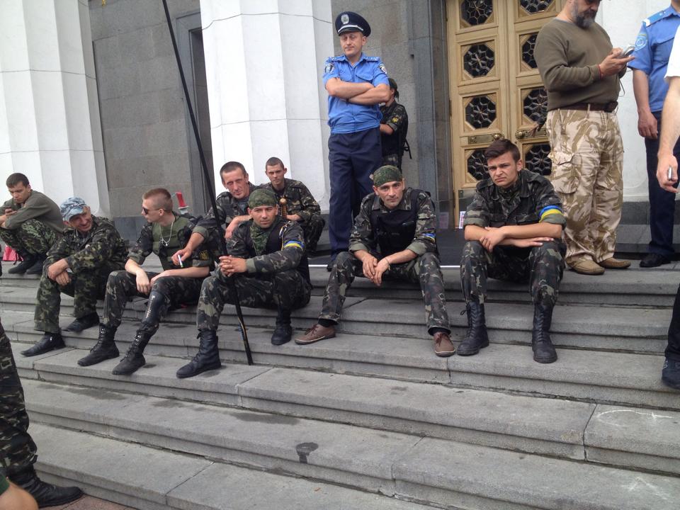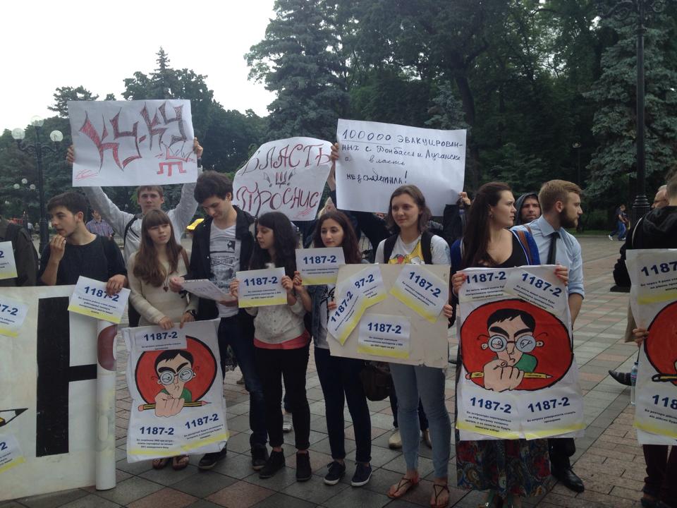 Беженцы из Донецкой и Луганской областей под Верховной Радой требуют предоставить им статус переселенцев. Киев, 5 июня 2014 года