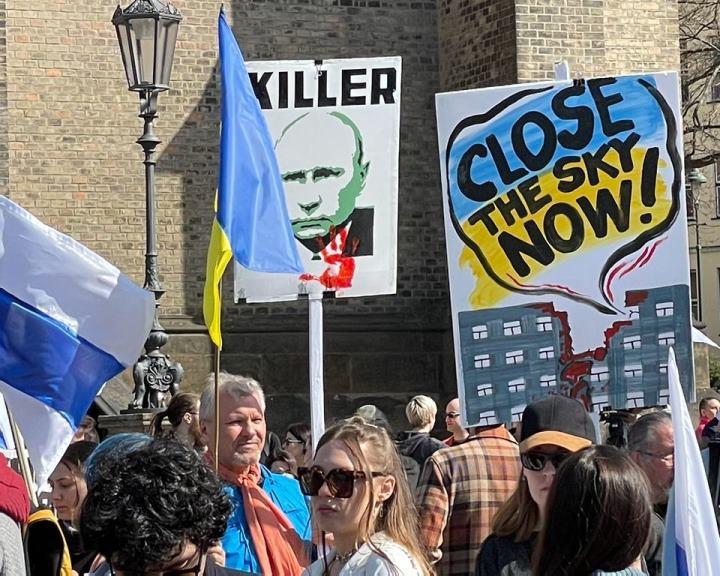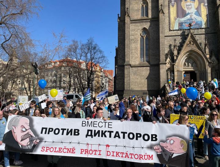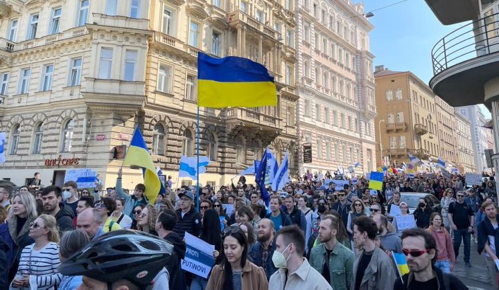 Десятки тысяч жителей Праги днем 26 марта вышли на шествие в поддержку Украины. Фото - Телеграм-канал DW-Главное.