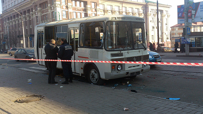 Жители города приносят цветы на площадь Ленина в Донецке, где вечером 13 марта экс-пресс-секретарь областной организации ВО "Свобода" Дмитрий Чернявский был убит в результате нападения пророссийских сепаратистов на участников митинга за единство Украины. Донецк, утро 14 марта