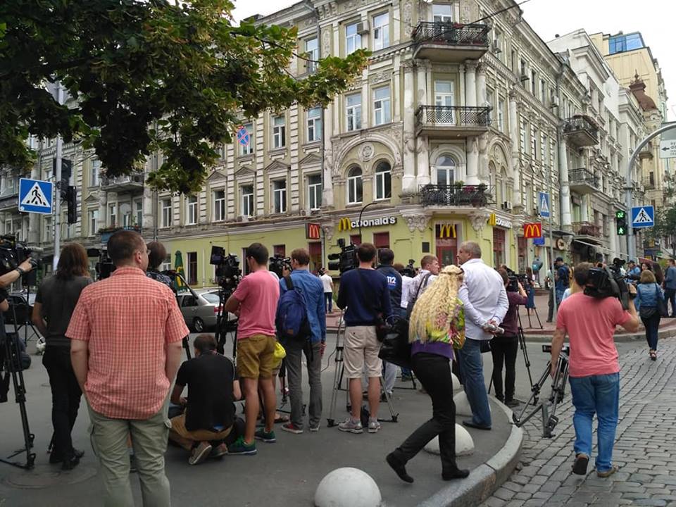 "Прямо сейчас на углу улиц Франко и Хмельницкого начинается акция памяти Павла Шеремета, убитого на этом месте два года назад", - говорится в сообщении под фото на странице "Детектор медиа" в Фейсбуке.