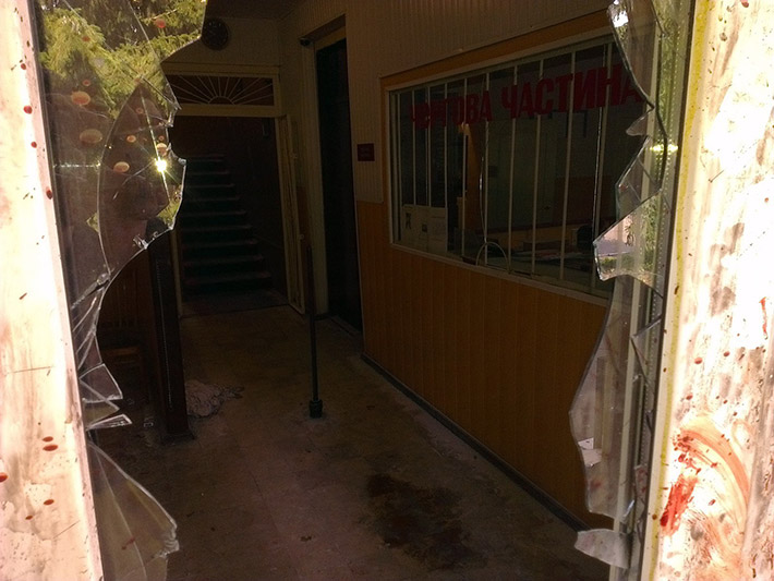 Так выглядит Врадиевский райотдел милиции после ночного штурма. Местные жители требовали наказать милиционеров, причастных к избиению и изнасилованию женщины. Врадиевка Николаевской области, 2 июля 2013 года