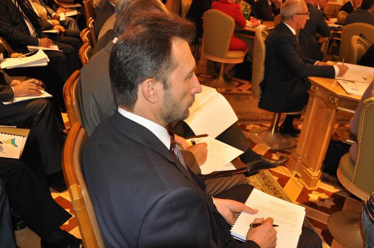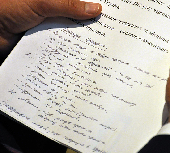 Председатель Донецкого областного совета Андрей Федорук присутствует на заседании Совета регионов и конспектирует слова Президента о необходимости обеспечить прозрачность и открытость избирательного процесса во время проведения в октябре 2012 года очередных выборов в Верховную Раду. Киев, 19 сентября 2012 года