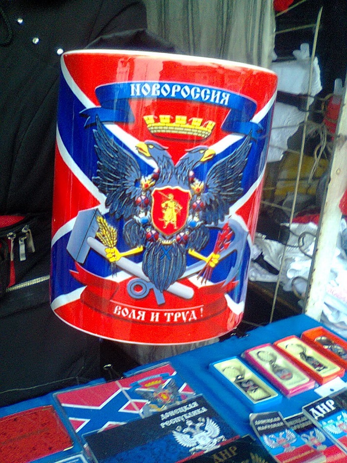 Рынки оккупированной части Донецкой области наполнены сувенирно-пропагандистской продукцией с символикой несуществующих государств.