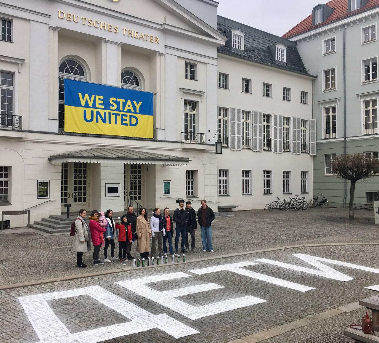 Перед немецким театром в Берлине нарисовали слово «ДЕТИ» в знак солидарности с Мариуполем, где российские оккупанты сбросили авиабомбу на Драмтеатр.