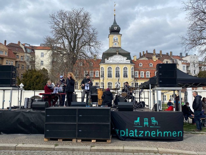 В Лейпциге 2 апреля состоялся музыкальный концерт в поддержку Украины, на который пришли украинцы и неравнодушные граждане Германии. Часть людей пришли с плакатами и украинской символикой.