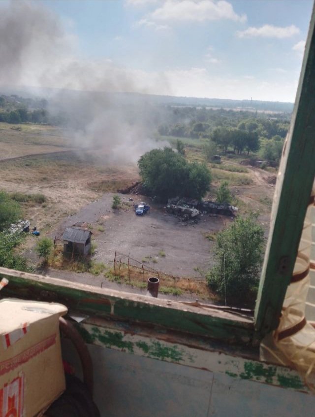 В оккупированной Кадиевке (бывший Стаханов) рашисты разместили военную базу между школой и жилым районом. Сами поселились в школе, подвергнув риску мирное население. Техника и штаб рашистов были уничтожены.