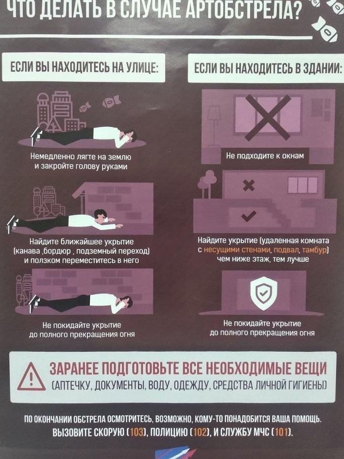 Такие листовки, рассказывающие, как следует вести себя во время массированных артиллеристских обстрелов, распространяются на оккупированной территории Донецкой области. Оккупированный Донецк, 18 апреля 2021 года