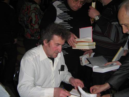 Автор иронических гариков Игорь Губерман раздает автографы жителям Донецка, пришедшим на творческий вечер поэта. Донецк, 4 марта 2009 года